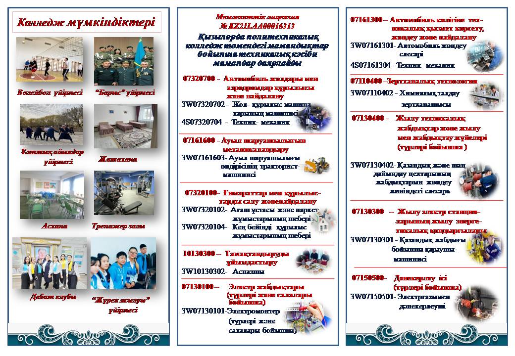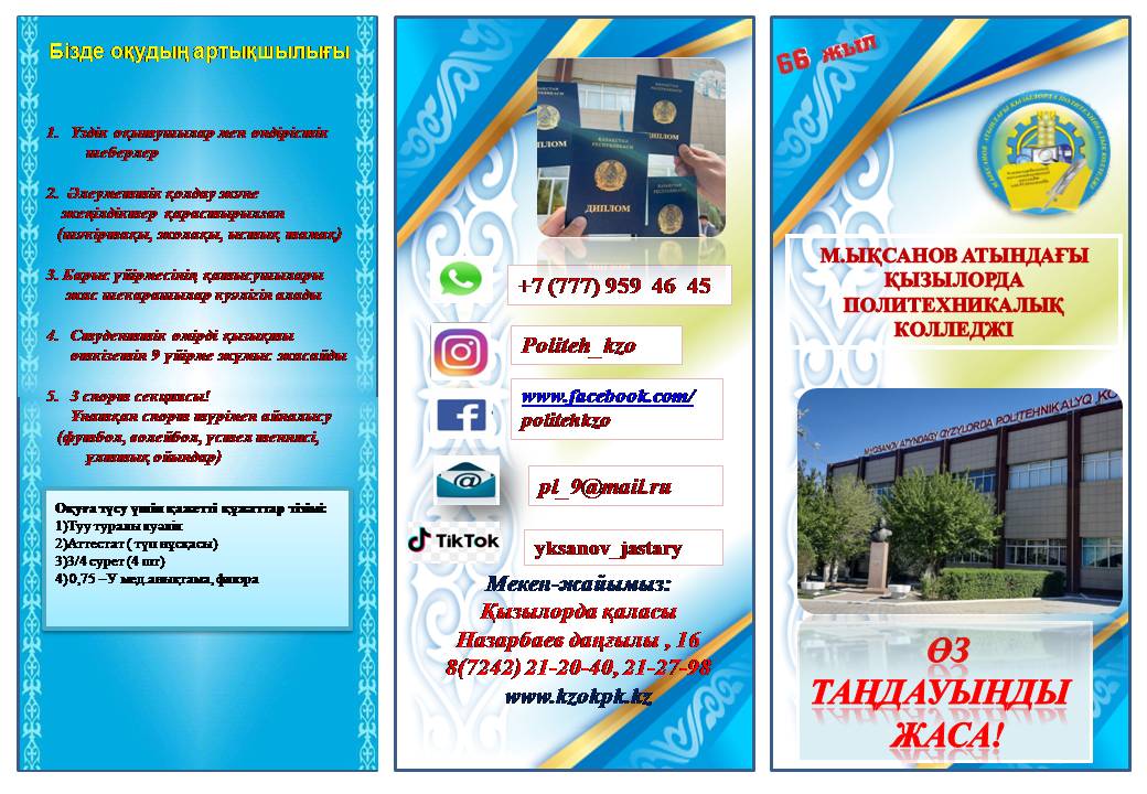 М.Ықсанов атындаы Қызылорда политехникалық колледжі Оқуға шақырады!!!